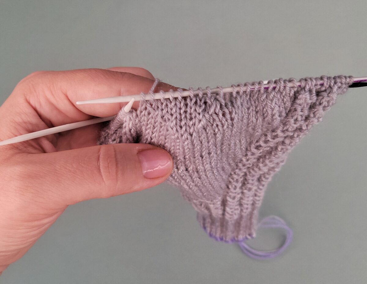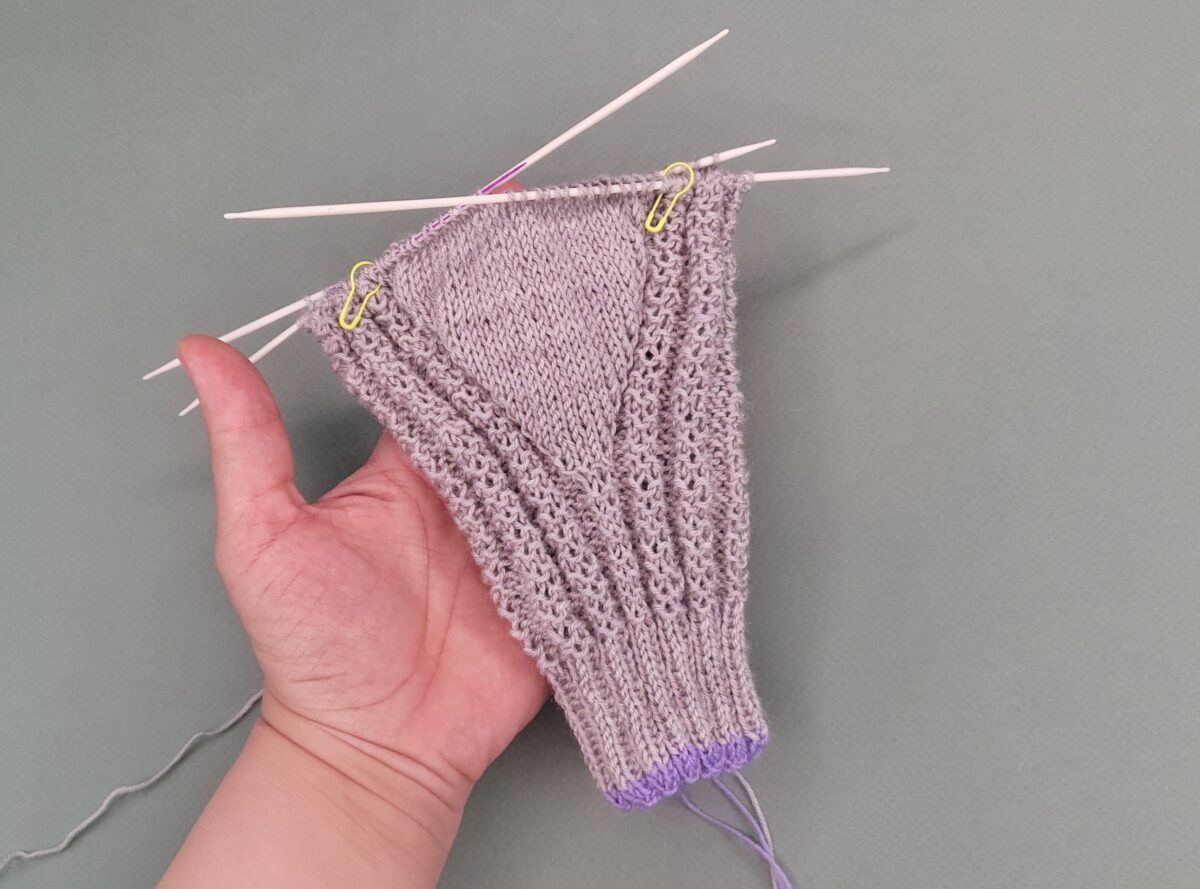 Weiter folgt die Zunahmeferse, die bis zur Sohle in Runden gestrickt wird.