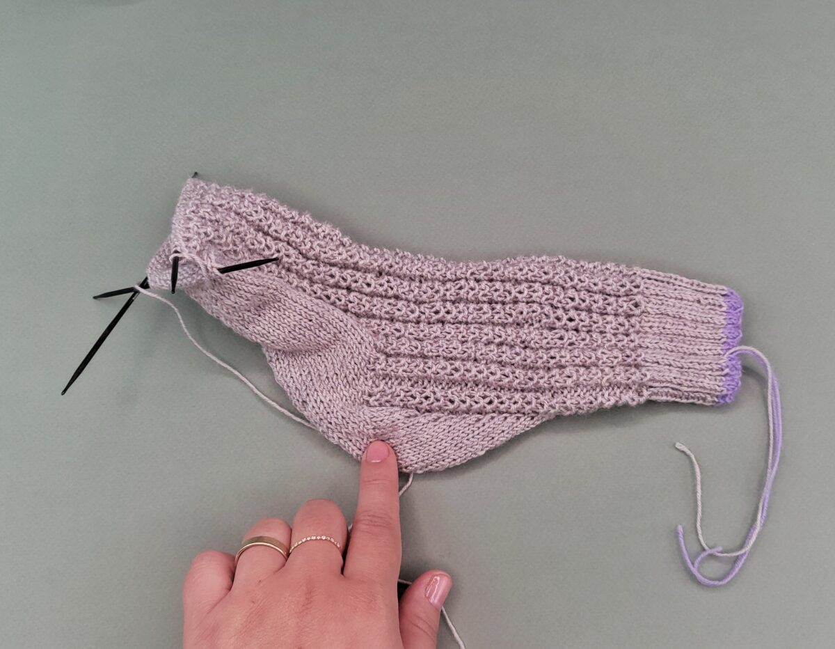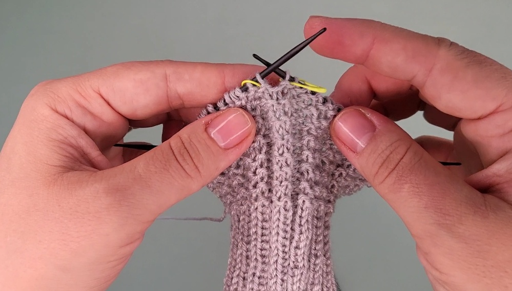 Strickt weitere 14 Runden in Rippe 2×2.