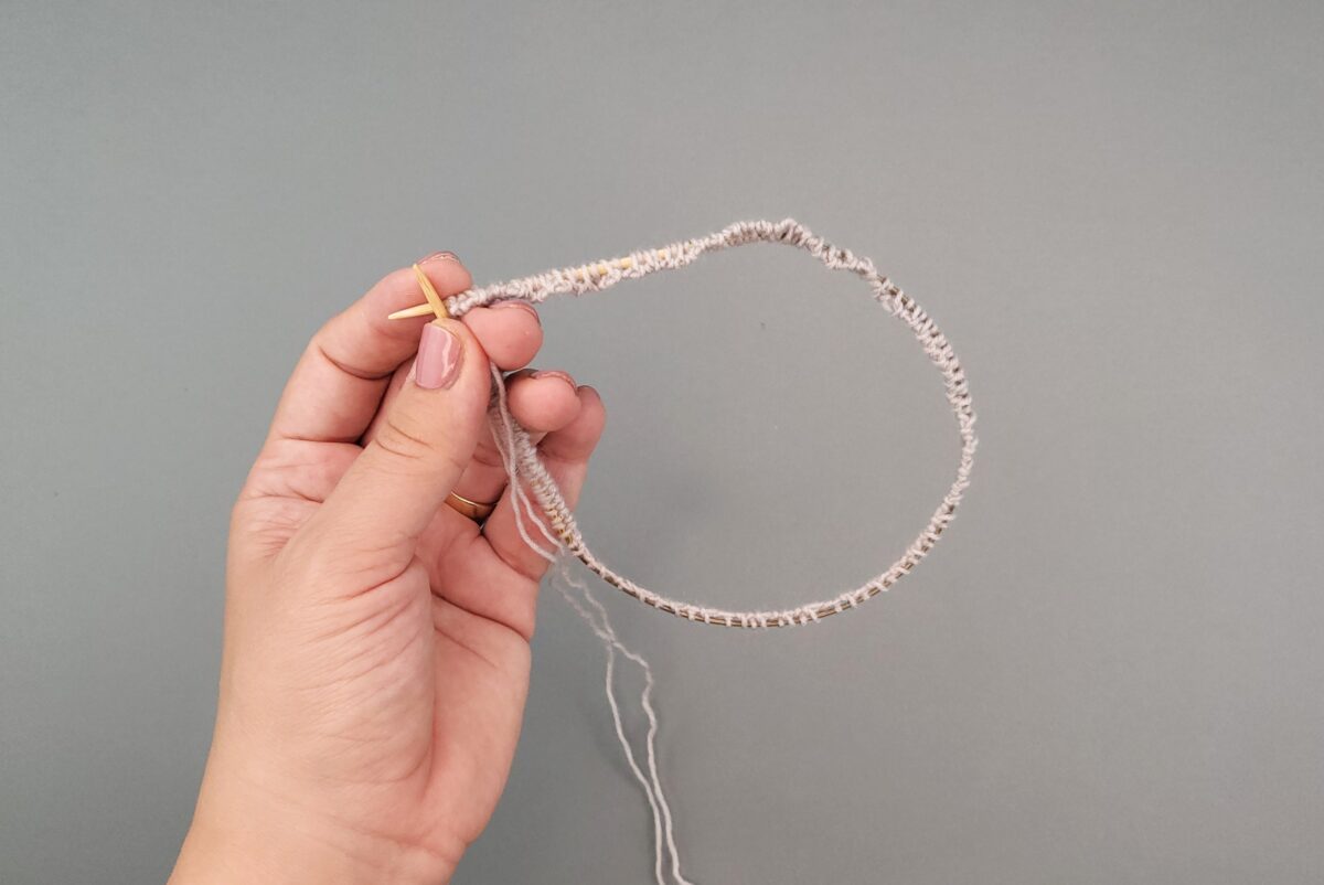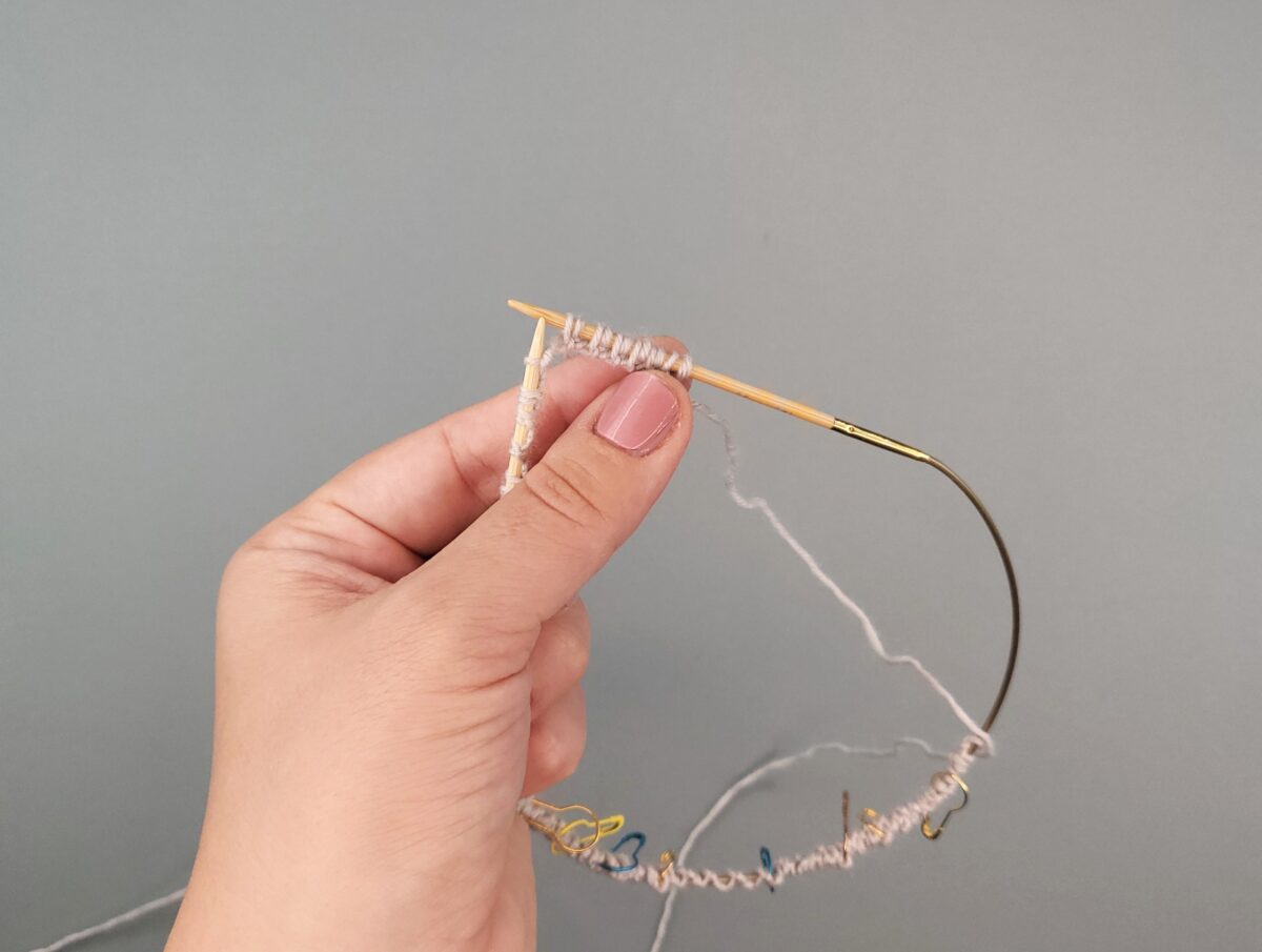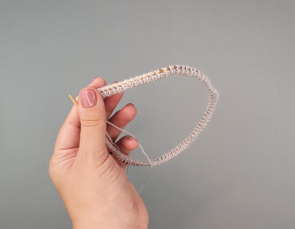Schlagt mit dem Italienischen Maschenanschlag die Maschen an. Ein ausführliches Video findet ihr hier.