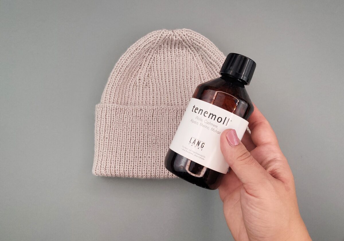Wascht die Mütze in der Handwäsche mit einem milden Waschmittel und lasst sie liegend trocknen.