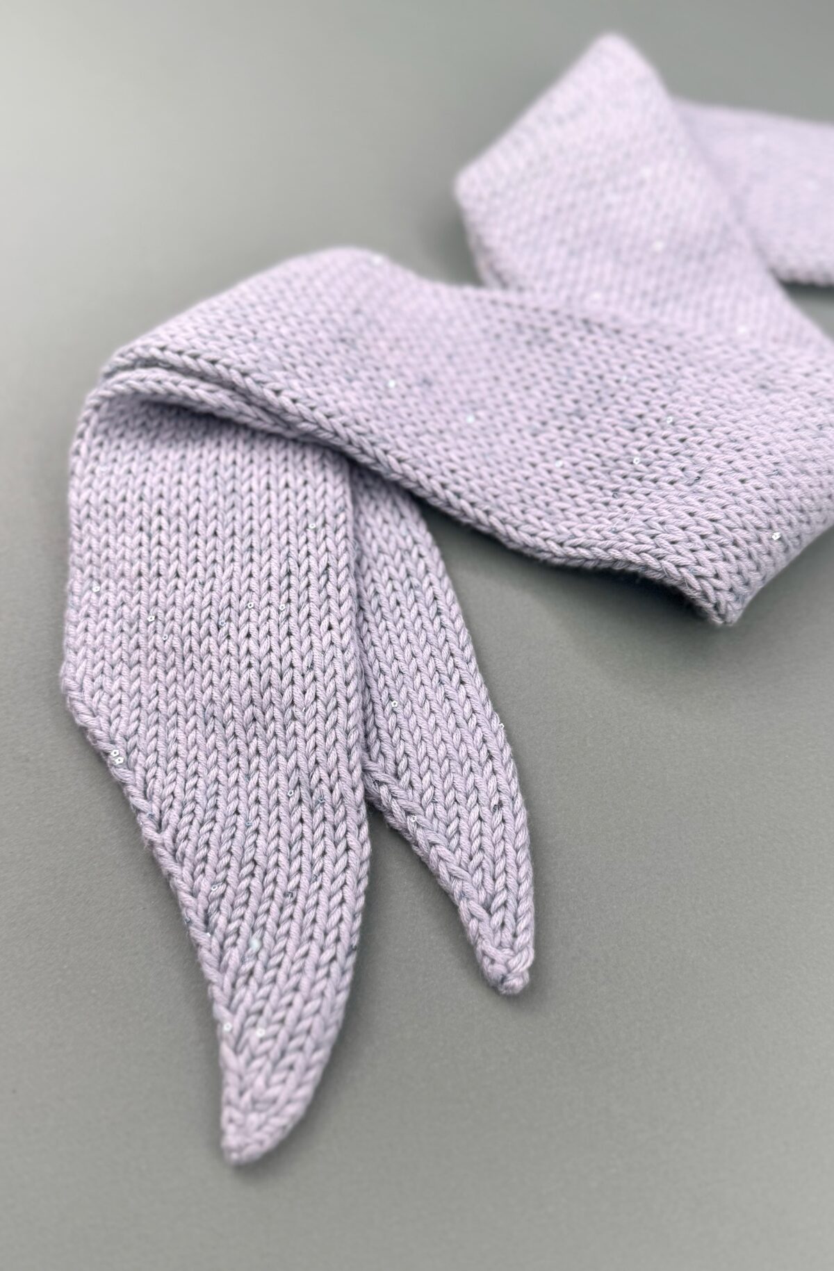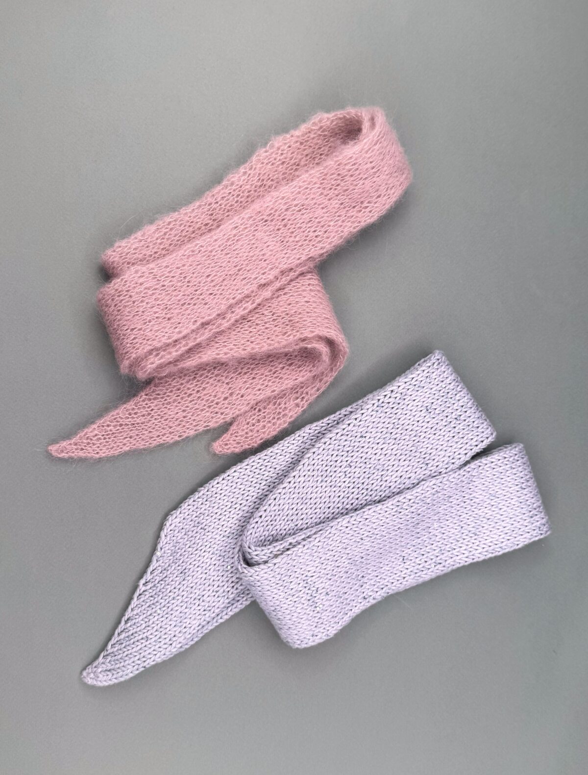 Die Details sind hier Programm. Die präzisen Schrägen habe ich an beiden Enden symmetrisch und spiegelverkehrt gestrickt. So können sie wunderbar um den Hals neben einander hängen.