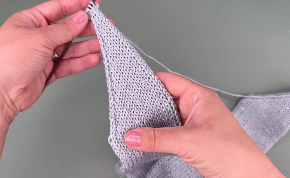 Die Maschenabnahme wird am Ende jeder Hinreihe gemacht.
